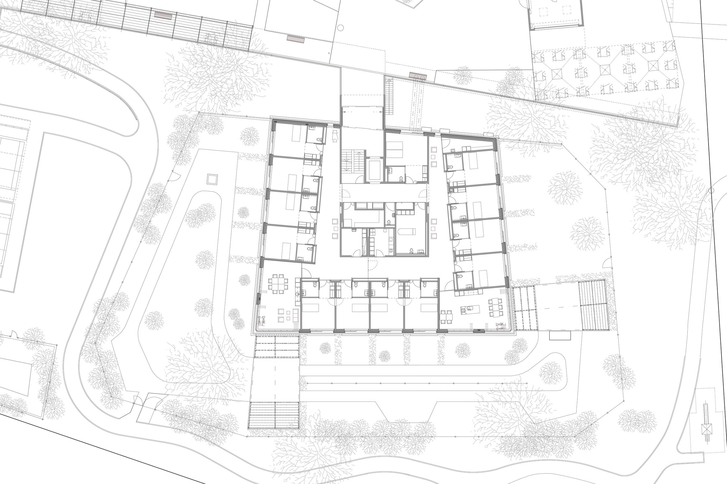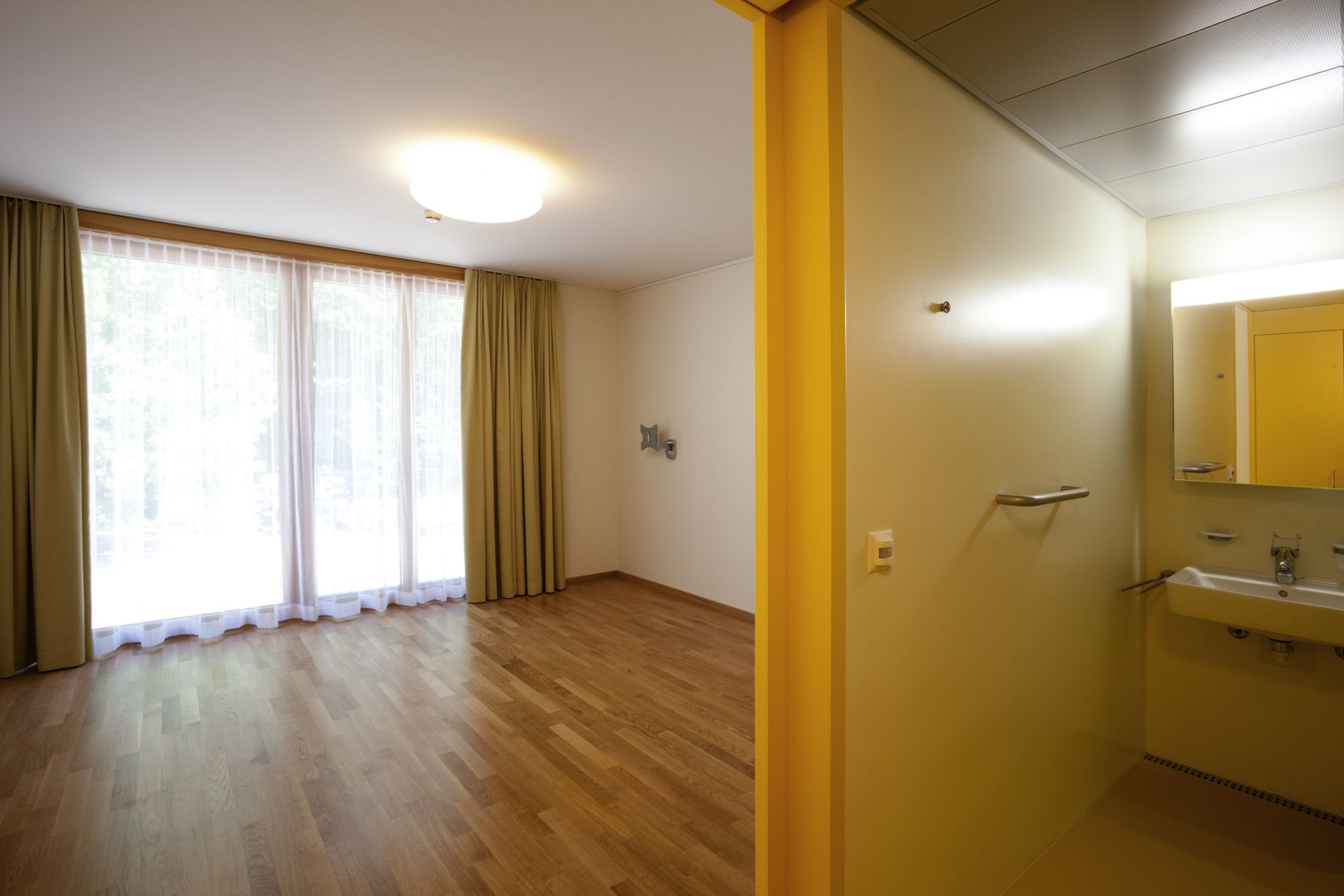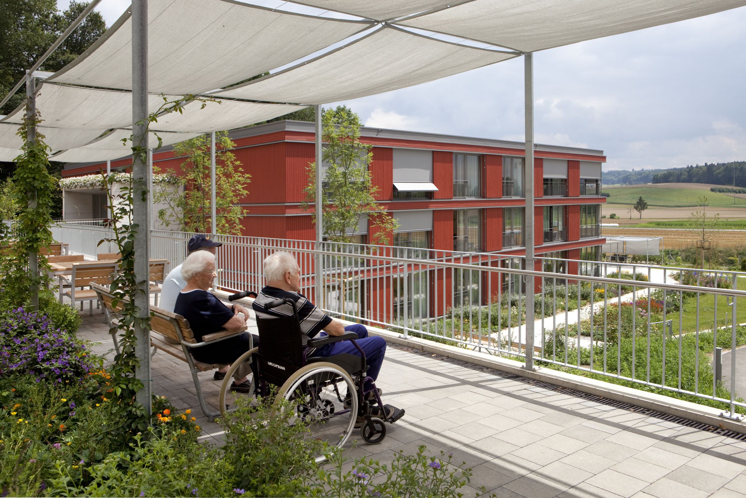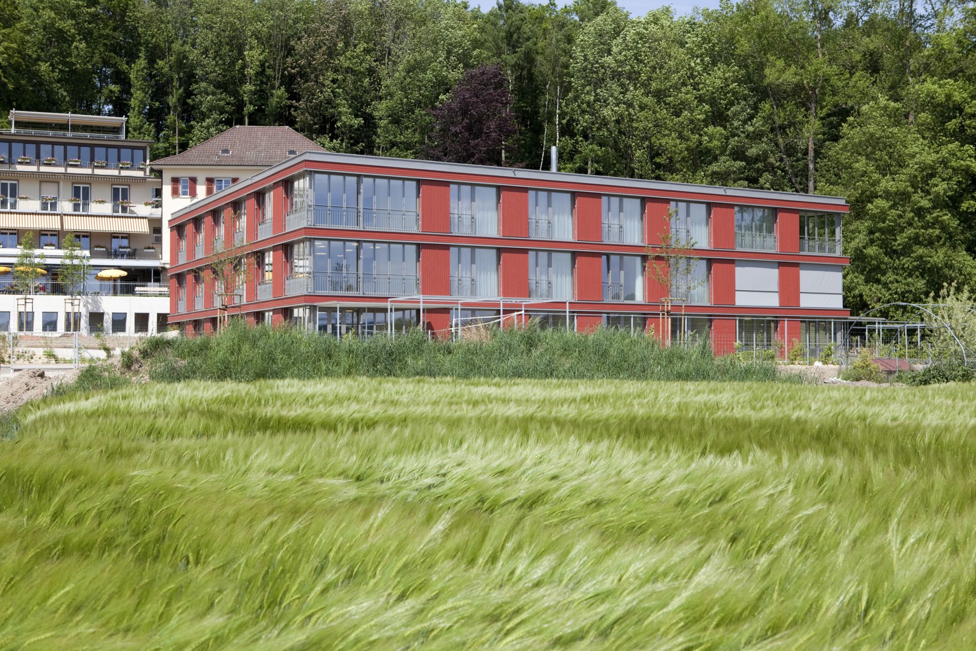 Mit einem Erweiterungsbau als freistehender Pavillon mit Einbettzimmern und Gemeinschaftsräumen für 36 Bewohner und einer unterirdischen Verbindung wurde die bestehende unter Denkmalschutz stehende Anlage mit zeitgemässen Pflegeplätzen ergänzt.