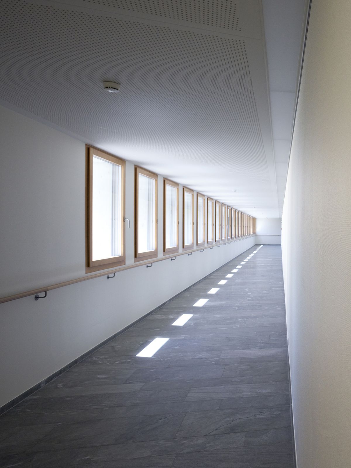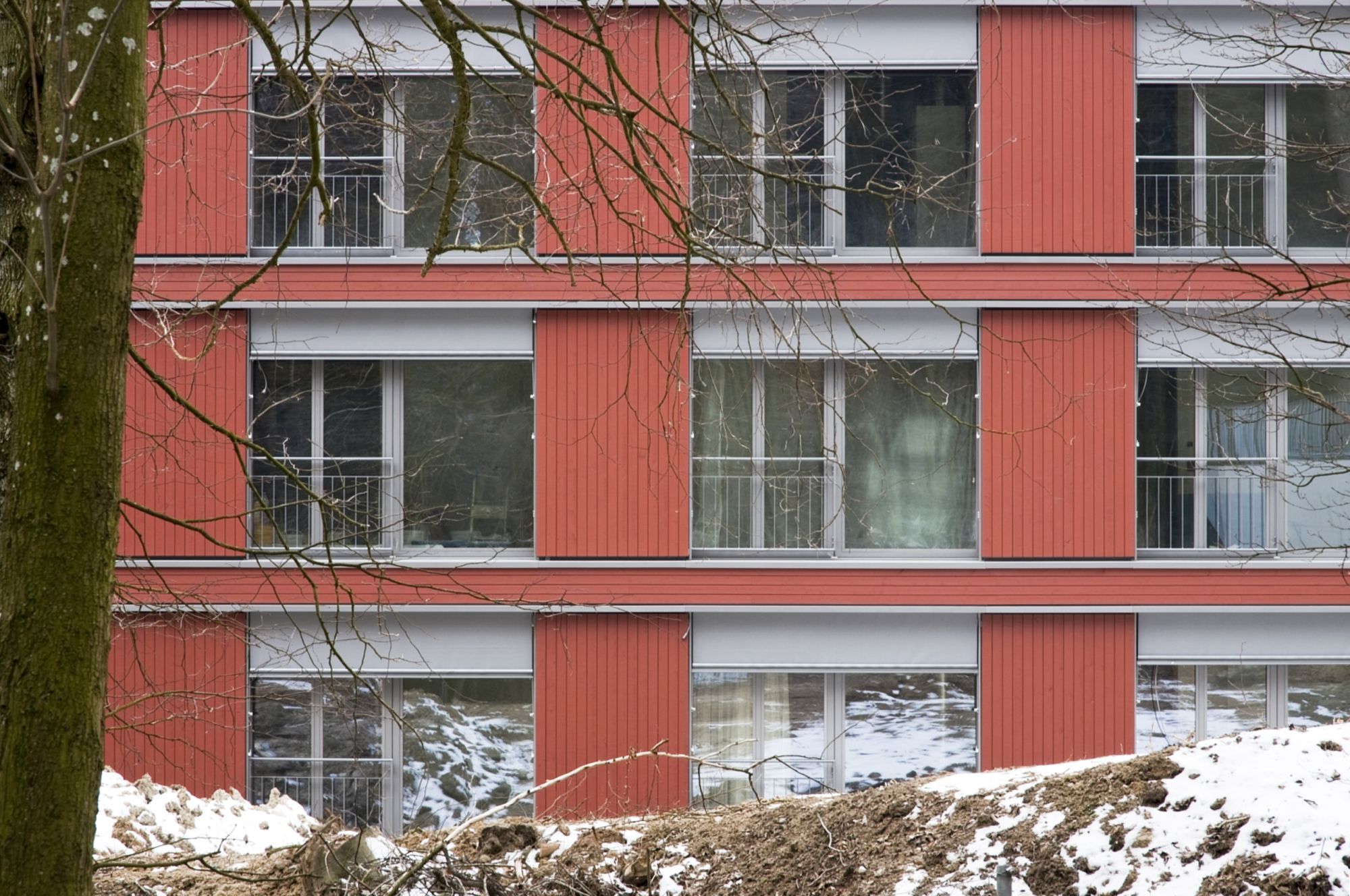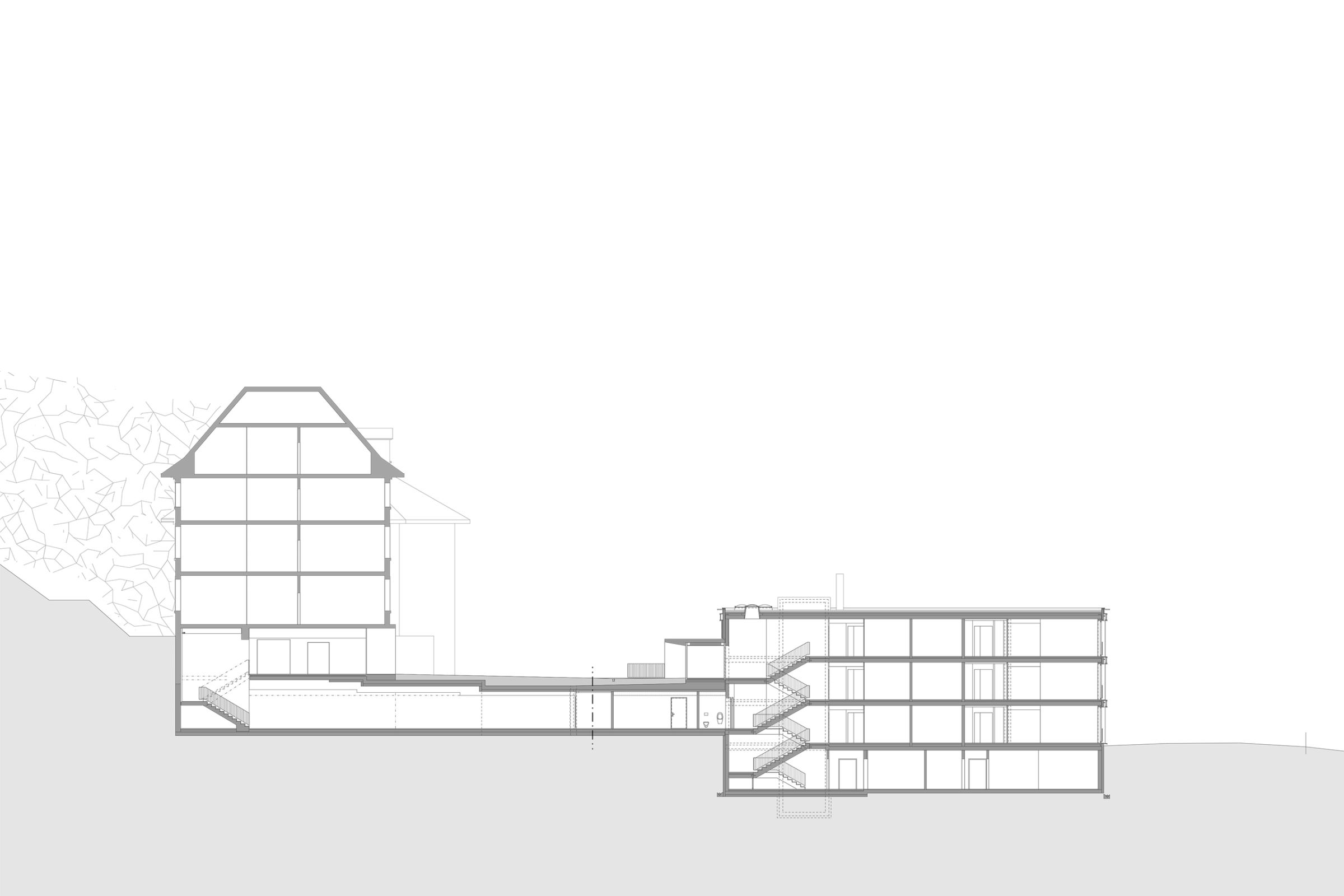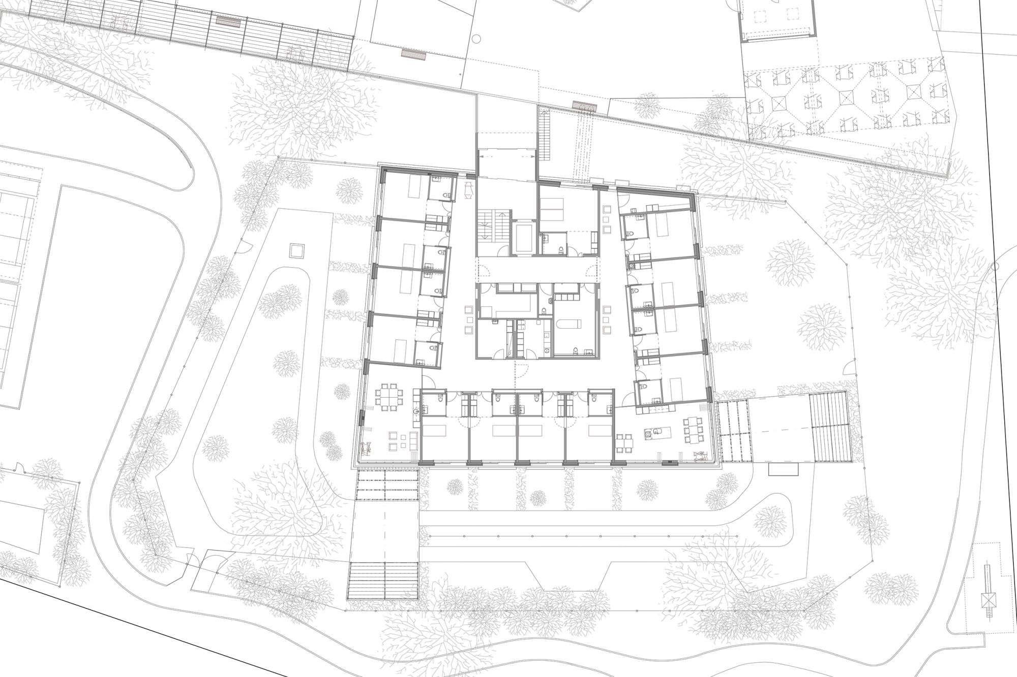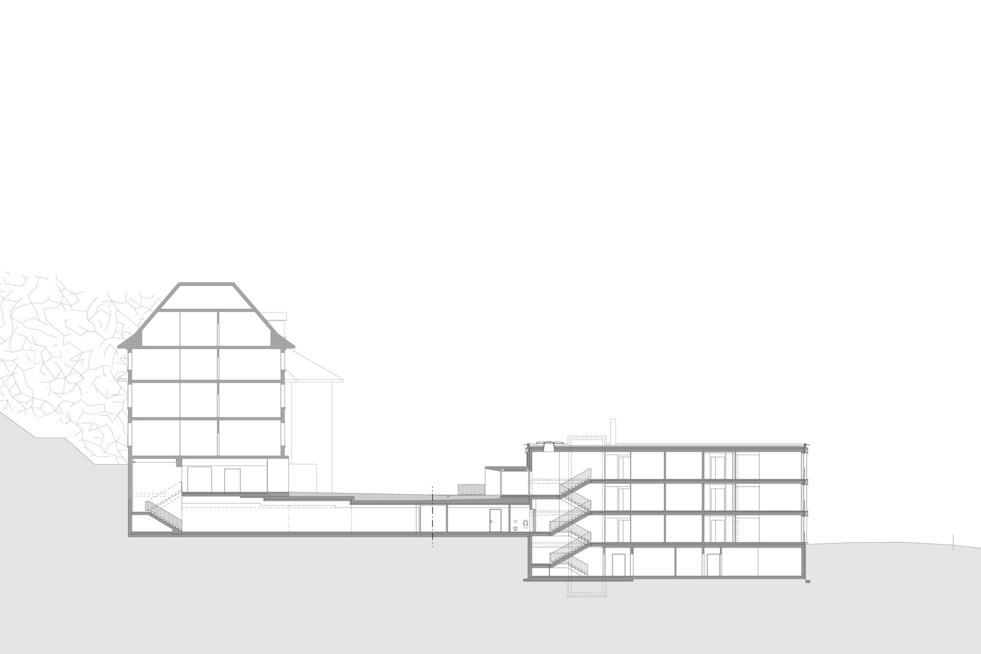 Mit einem Erweiterungsbau als freistehender Pavillon mit Einbettzimmern und Gemeinschaftsräumen für 36 Bewohner und einer unterirdischen Verbindung wurde die bestehende unter Denkmalschutz stehende Anlage mit zeitgemässen Pflegeplätzen ergänzt.