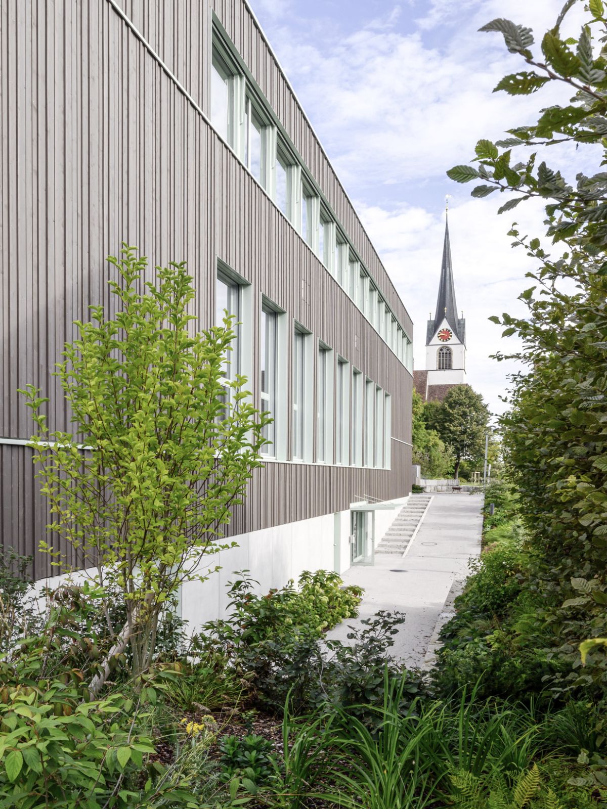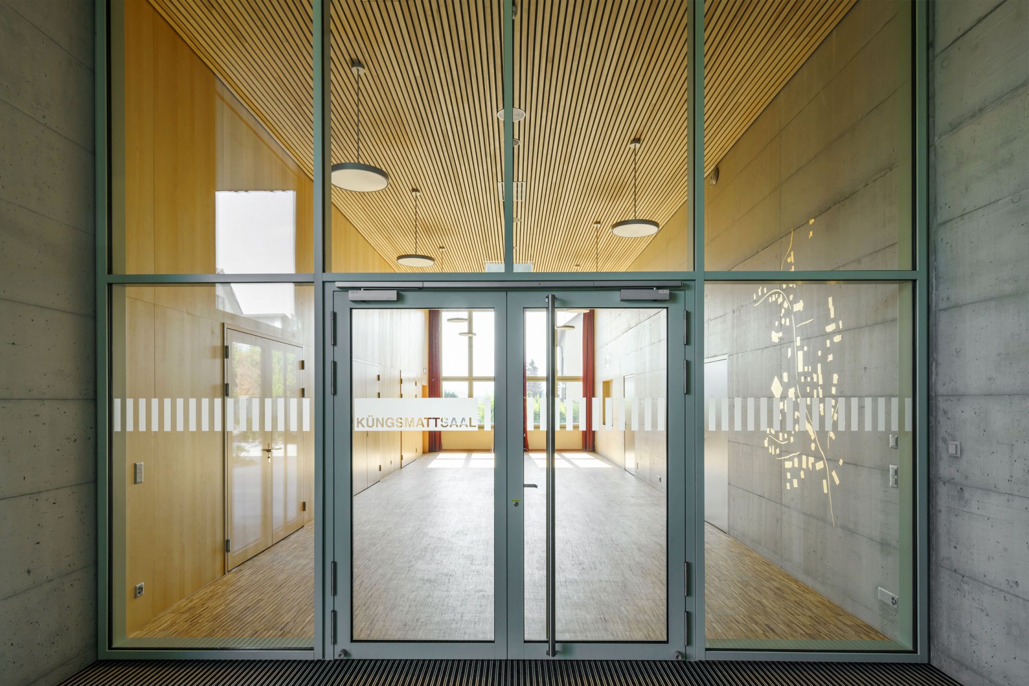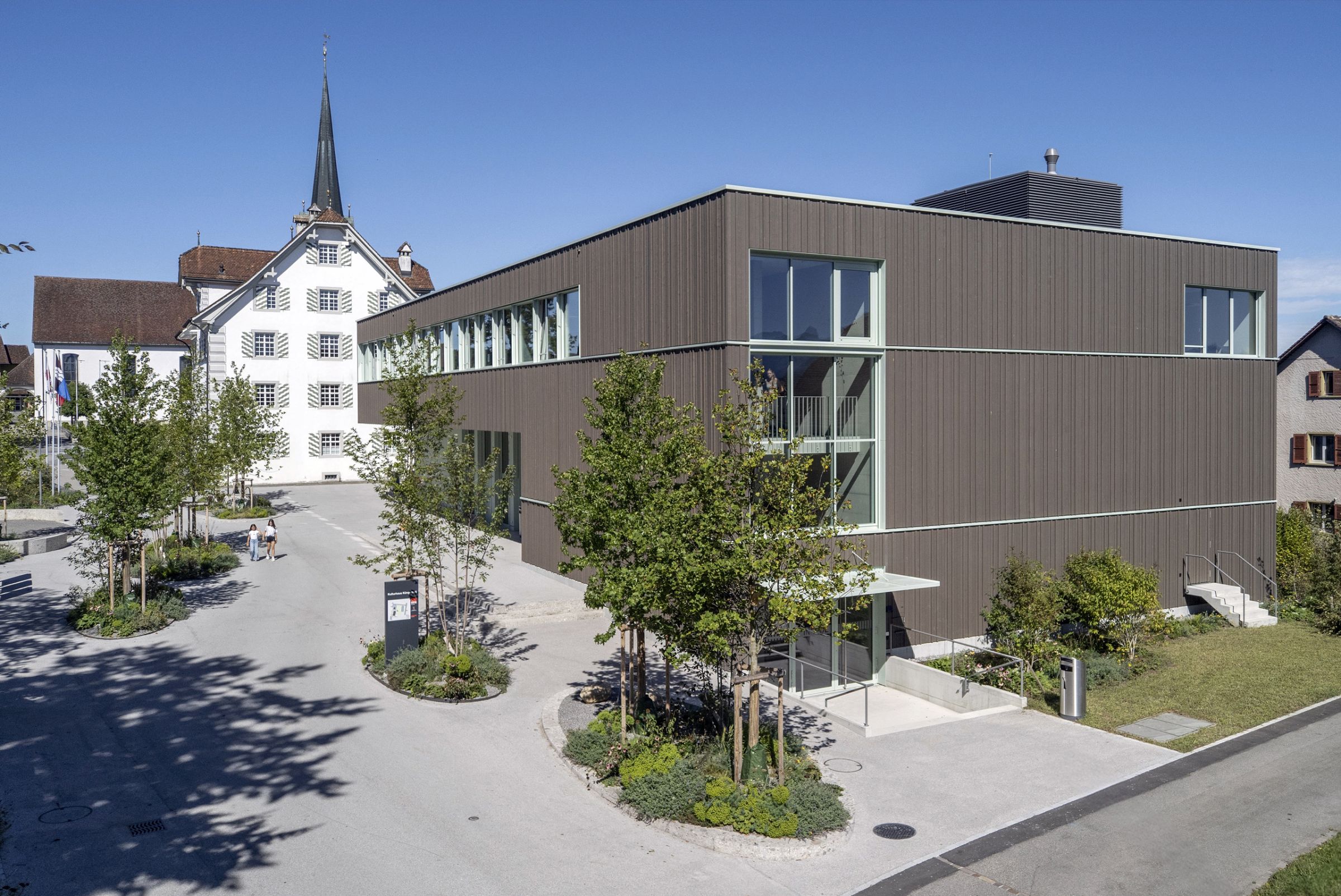 Benachbart zum denkmalgeschützten, herrschaftlichen Gemeindehaus steht präzise eingefügt das Kulturhaus Küngsmatt mit den drei Nutzungsbereichen, Saal mit Bühne und Foyer für 300 Personen, Bibliothek/Proberäume und vier Kinosälen. Das Konzept des Neubaus entspricht städtebaulich, volumetrisch und strukturell weitgehend der zweiten Etappe des Wettbewerbsprojektes Trifolium aus dem Jahre 2008.