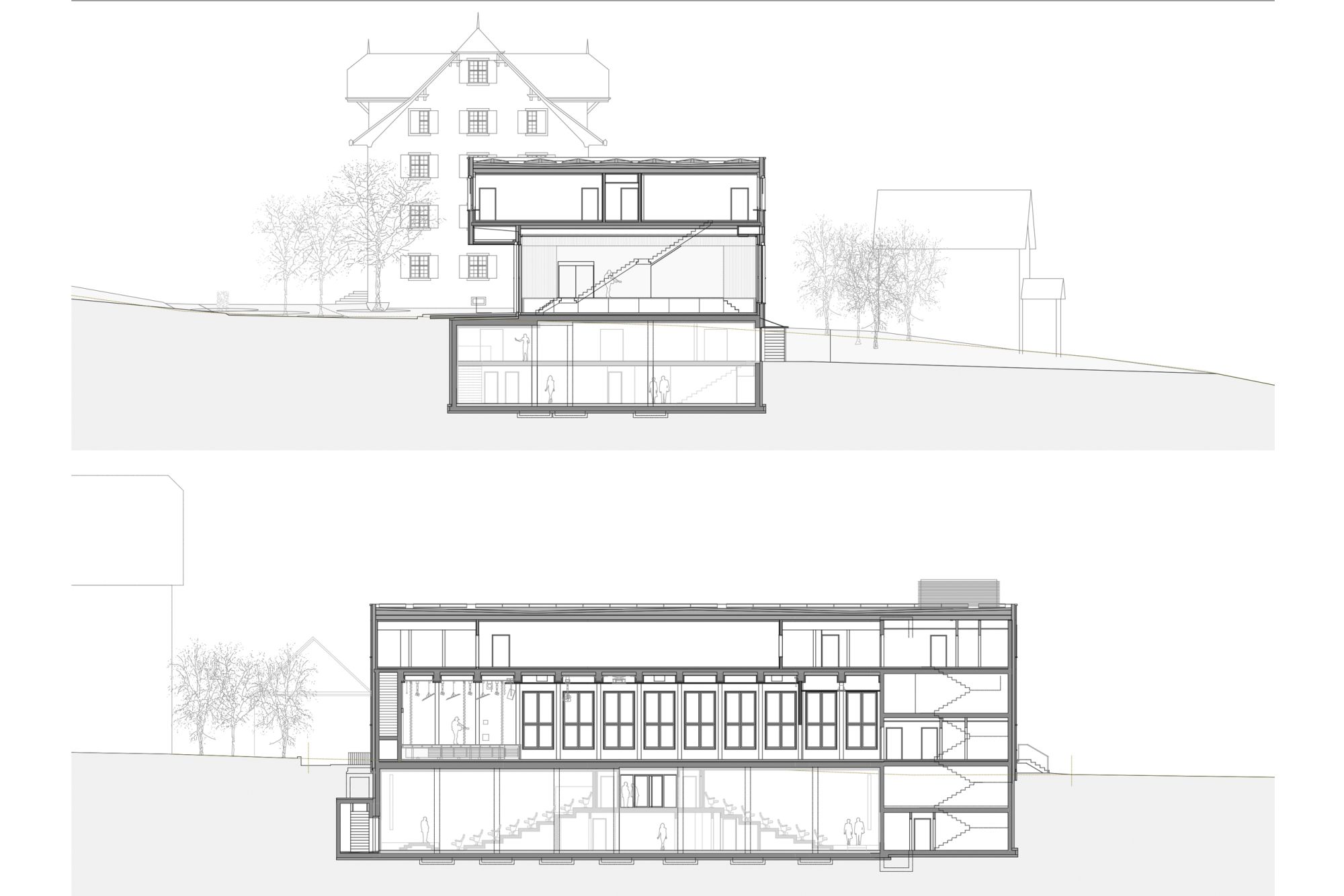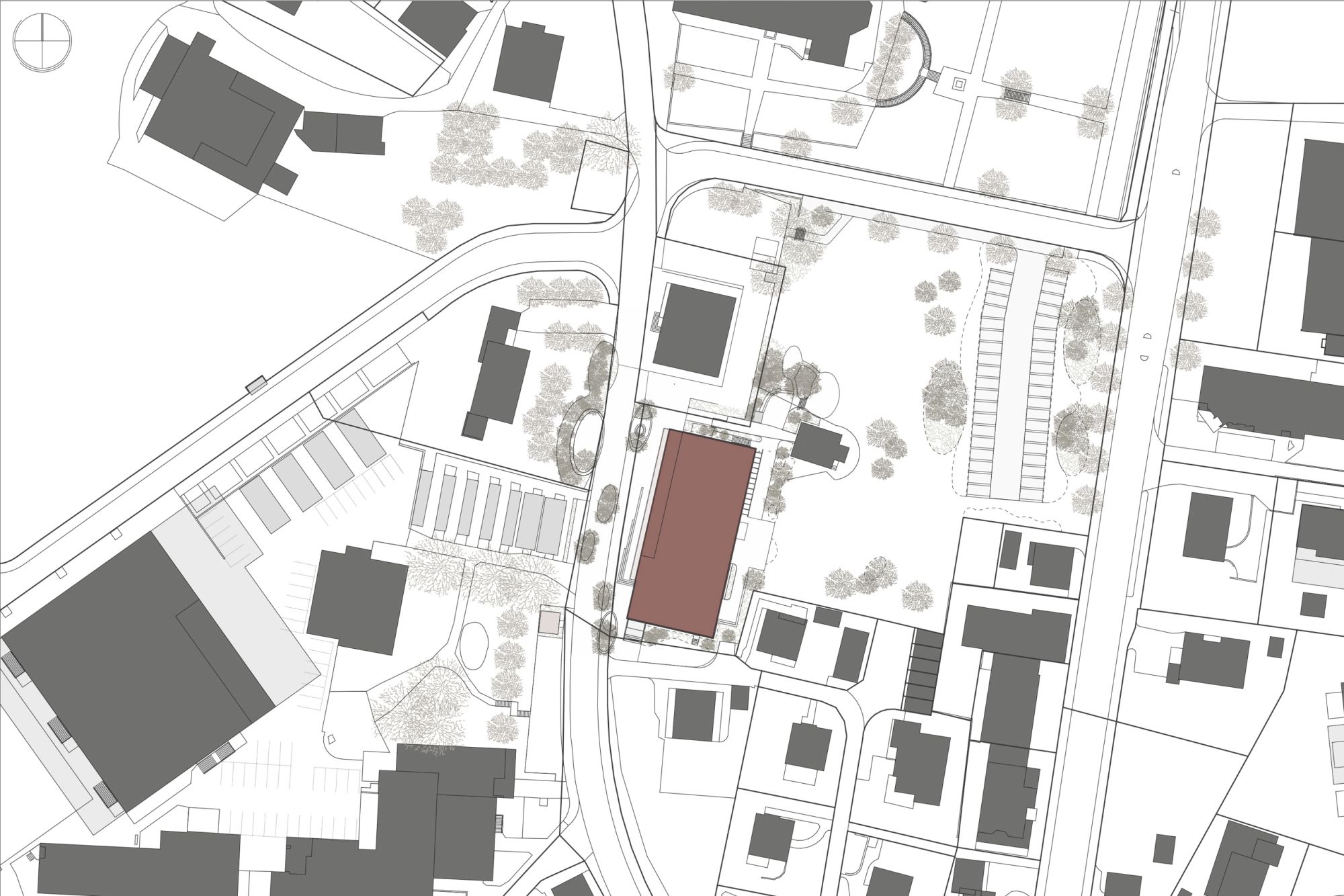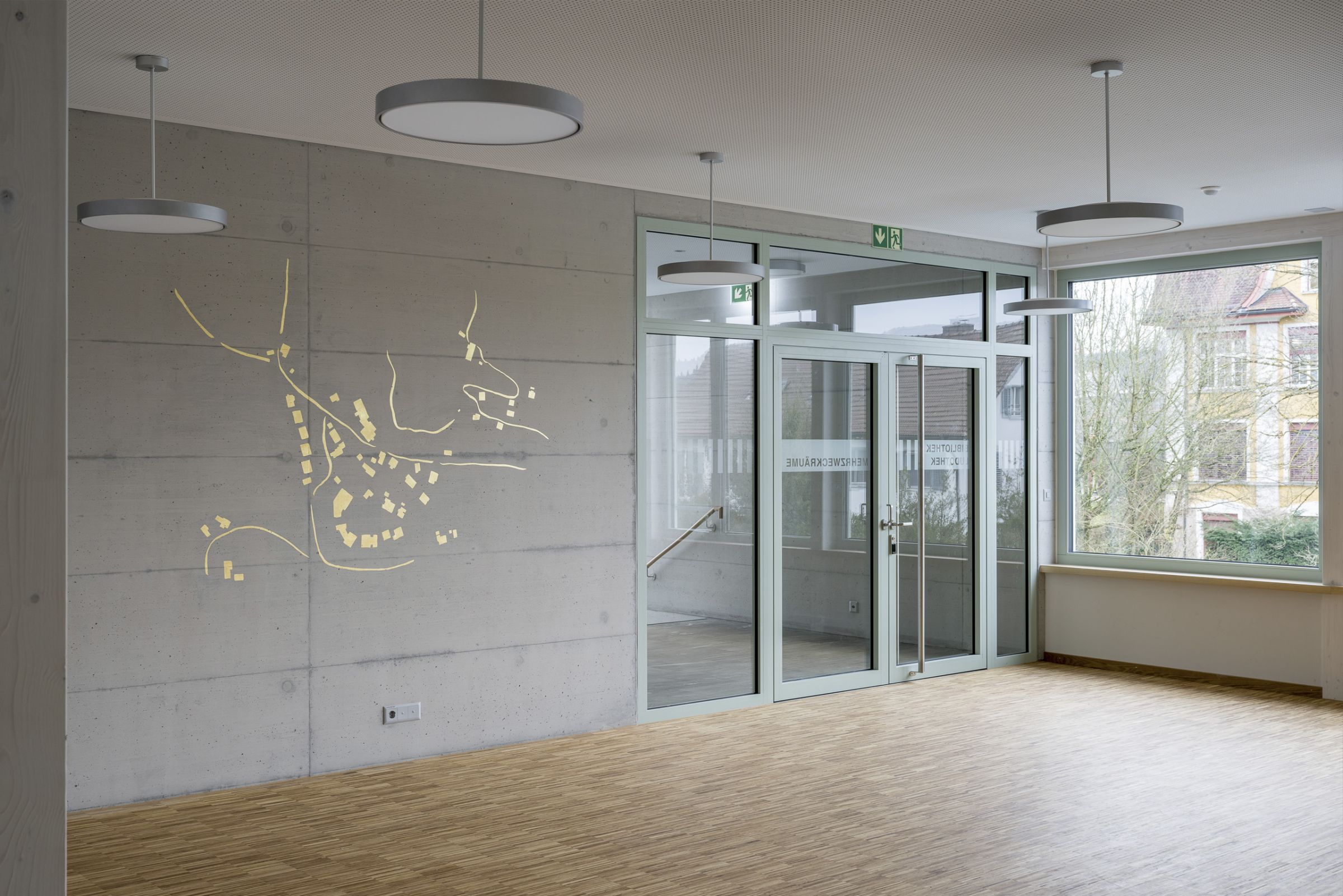Benachbart zum denkmalgeschützten, herrschaftlichen Gemeindehaus steht präzise eingefügt das Kulturhaus Küngsmatt mit den drei Nutzungsbereichen, Saal mit Bühne und Foyer für 300 Personen, Bibliothek/Proberäume und vier Kinosälen. Das Konzept des Neubaus entspricht städtebaulich, volumetrisch und strukturell weitgehend der zweiten Etappe des Wettbewerbsprojektes Trifolium aus dem Jahre 2008.