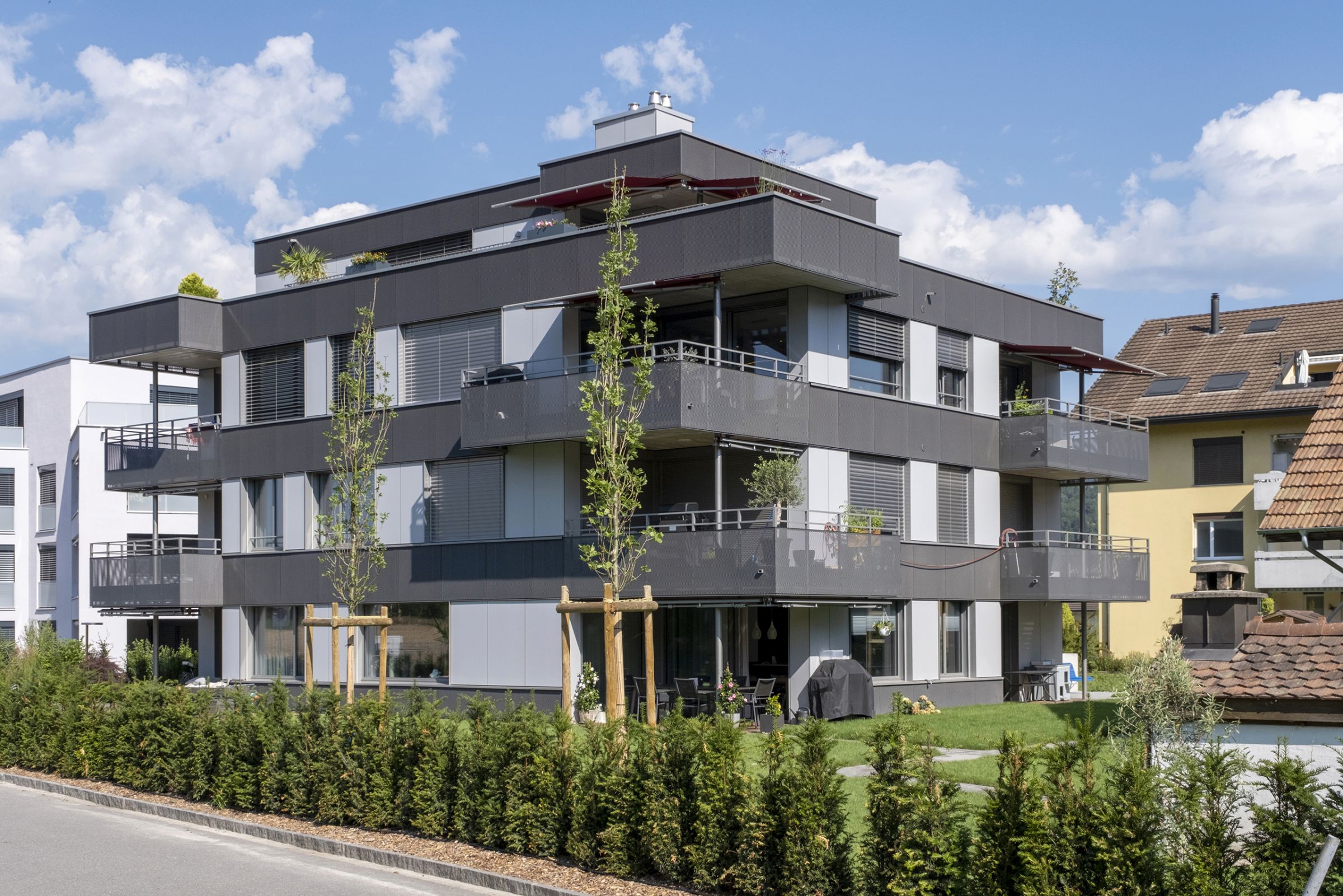 Das Mehrfamilienhaus mit vier zum Teil sehr grosszügigen Wohnungen, unter anderem Wohnraum für den Eigenbedarf der Grundeigentümer, steht auf der Restfläche eines Grundstückes mit einem kleinen, alten Bauernhaus.