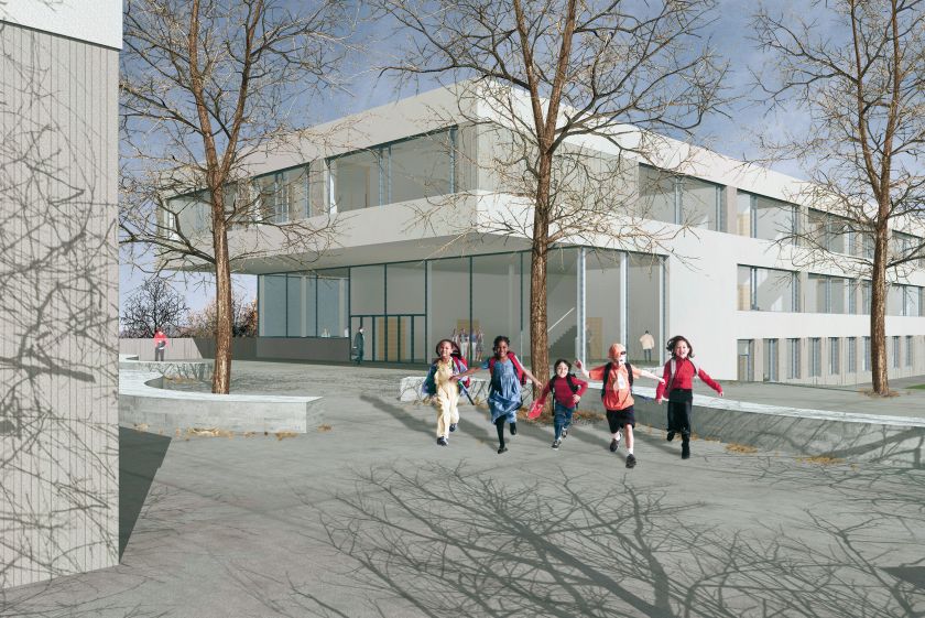 Neubau Schulhaus in Systembau Schulanlage Rütihof, Baden Rütihof